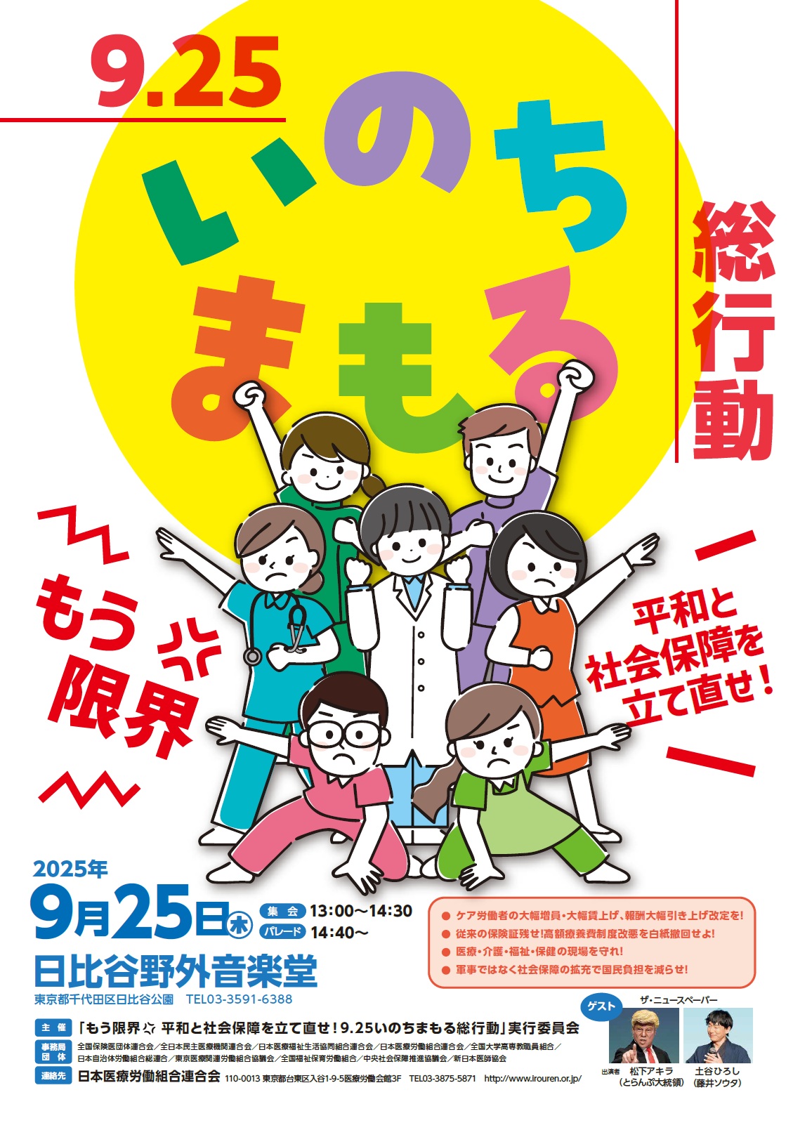 主催:「もう限界💢 平和と社会保障を立て直せ!9.25いのちまもる総行動」実行委員会
