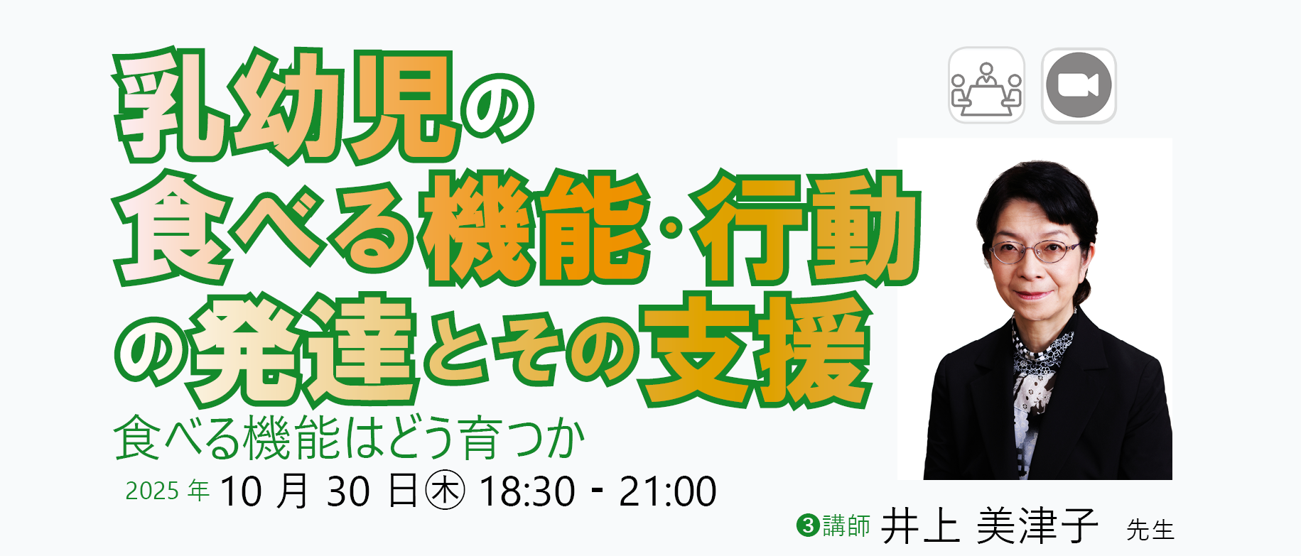 終了しました 会場 10名 オンライン 90名 乳幼児の食べる機能・行動の発達とその支援