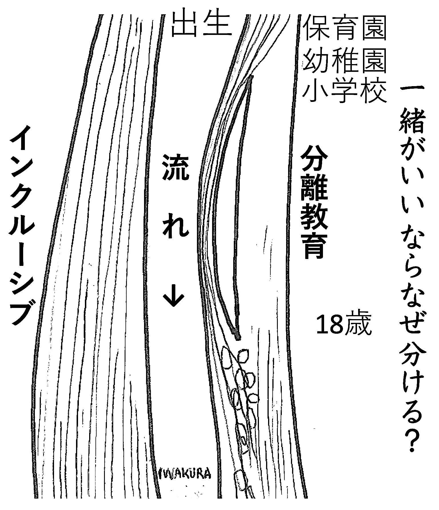 障害を持った子がみんなと一緒の学級で育とうとすると「発達保障のための、特別支援学級があるのでそちらに」と、分ける誘導がかかります。国連の障害者権利委員会は、日本政府に対して「障害のあるすべての子どもたちの通常学校へのアクセスを確保し在籍を拒否することを許さない」と勧告した。とはいえ圧倒的な教員不足と長時間勤務( 世界平均の1.5 倍) で40 人の学級を運営している現状で一人ひとりにあわせた支援( 合理的配慮) は可能なのでしょうか。